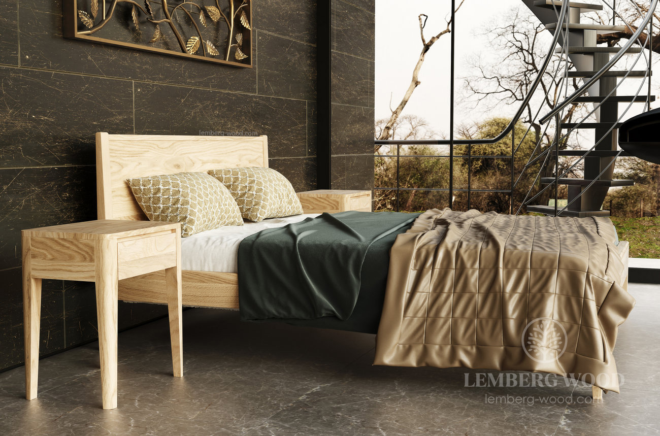 Unlike other collections, the headboard of this bed is made of wood and is not covered with additional materials – for those cases when the customer gravitates towards minimalism.