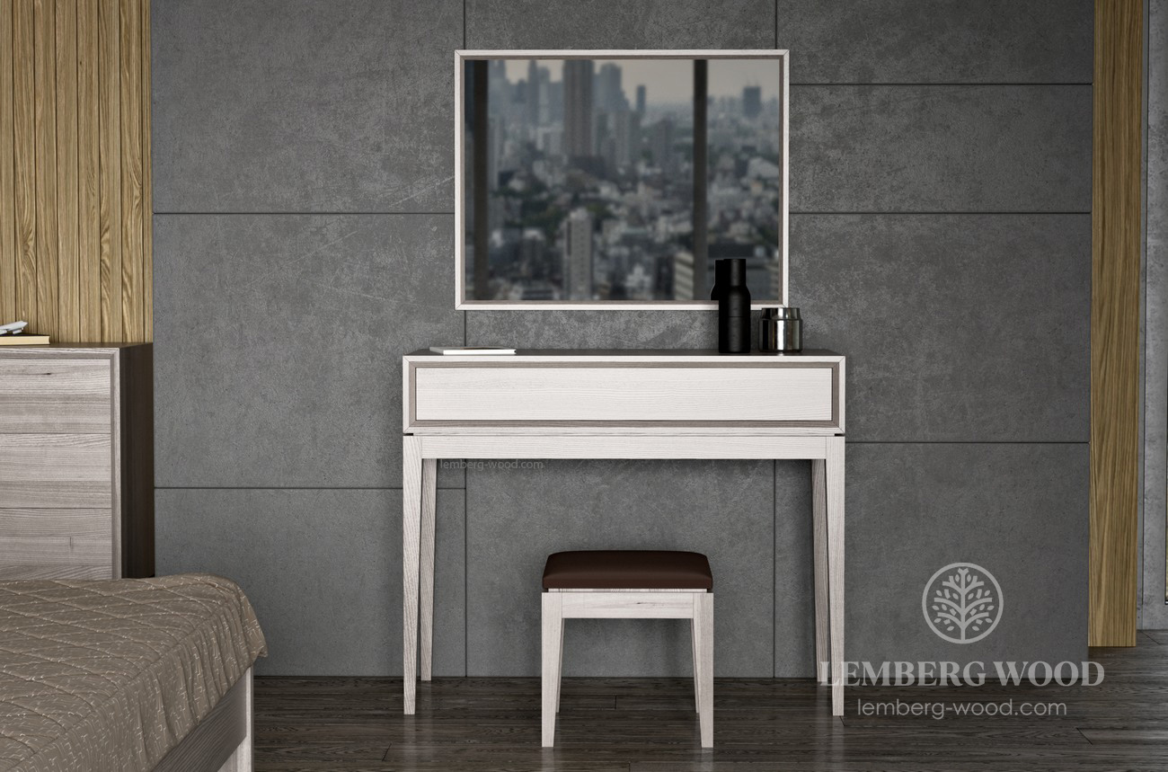 Like the bedside tables, this compact dressing table is complemented by an additional drawer plus a table top surface.