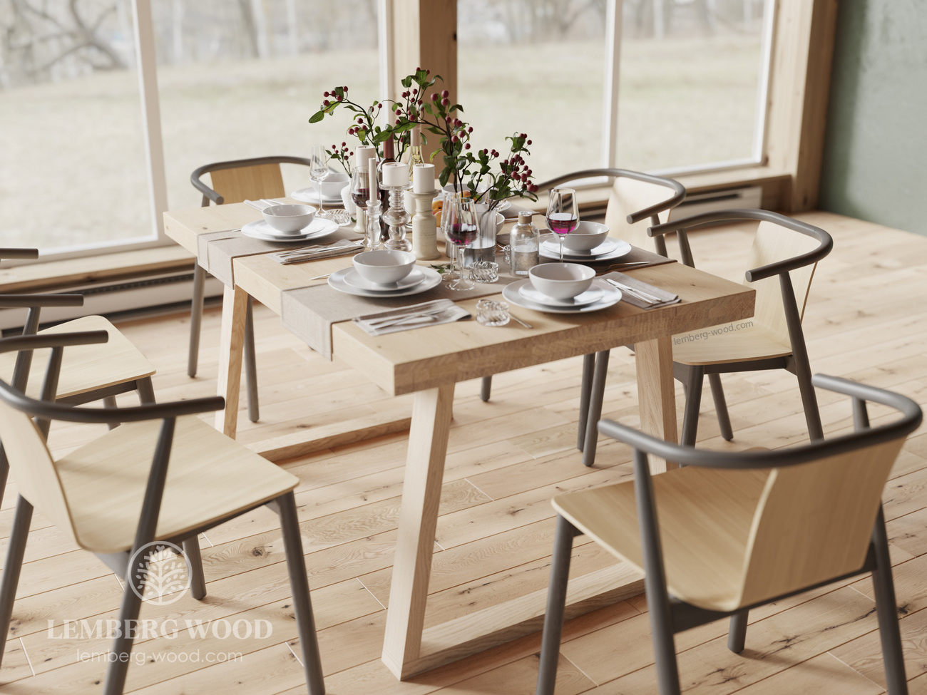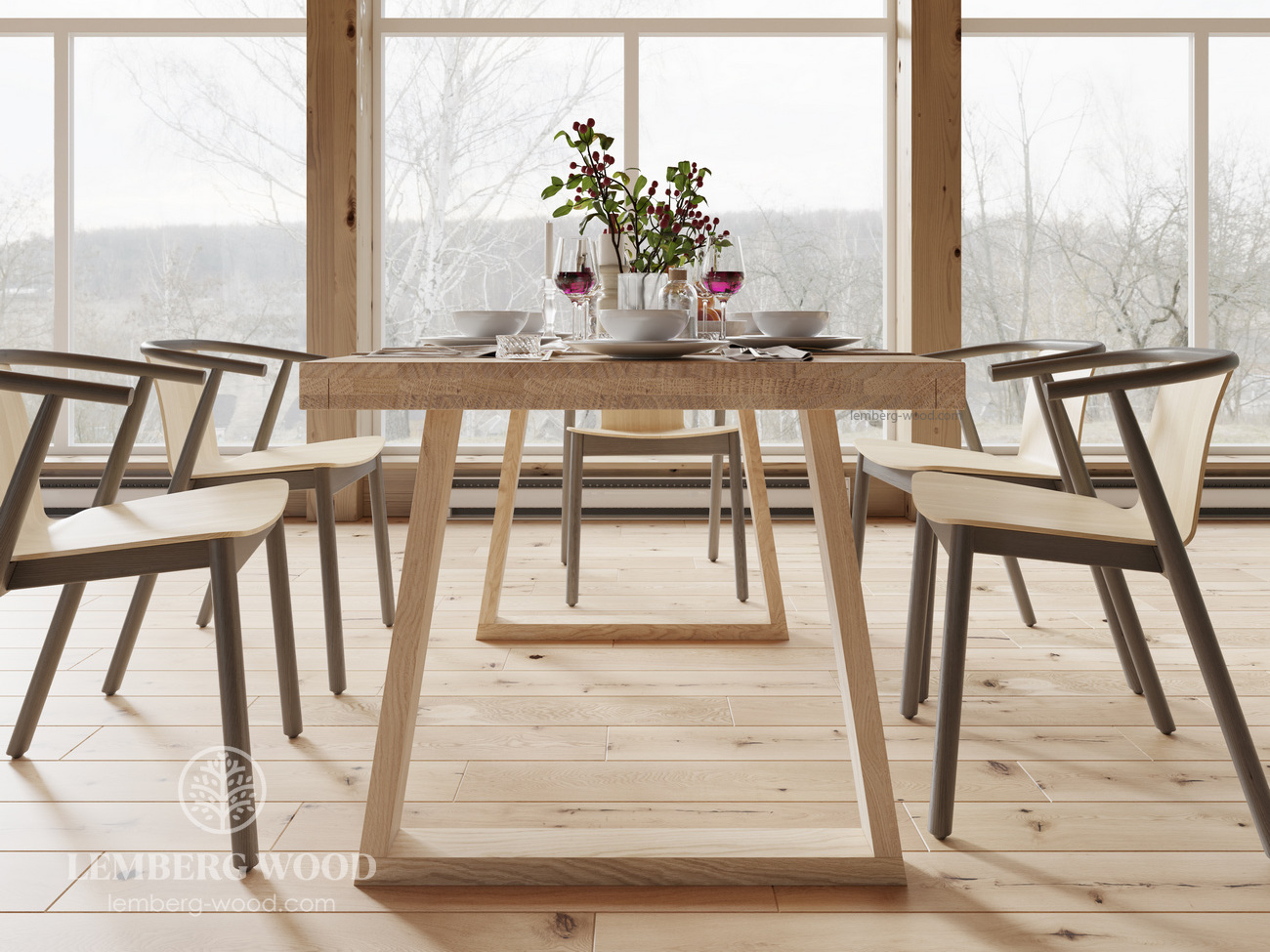 KELN table is completely made of natural material, its base is oak. The surfaces and legs are monochromatic, but this is a kind of highlight. The design is made in a light, gentle tone, so it looks very neat and concise. By itself, the table is quite stable and suitable for daily use. It stands securely on the floor and calmly withstands the permissible load. The KELN table will fit into a room with any interior. It can be a classic, a loft, and other design solutions – outwardly, the table looks simple, and at the same time quite luxurious. The big advantage is that it is made of natural wood. Such things will never be superfluous in the interior.